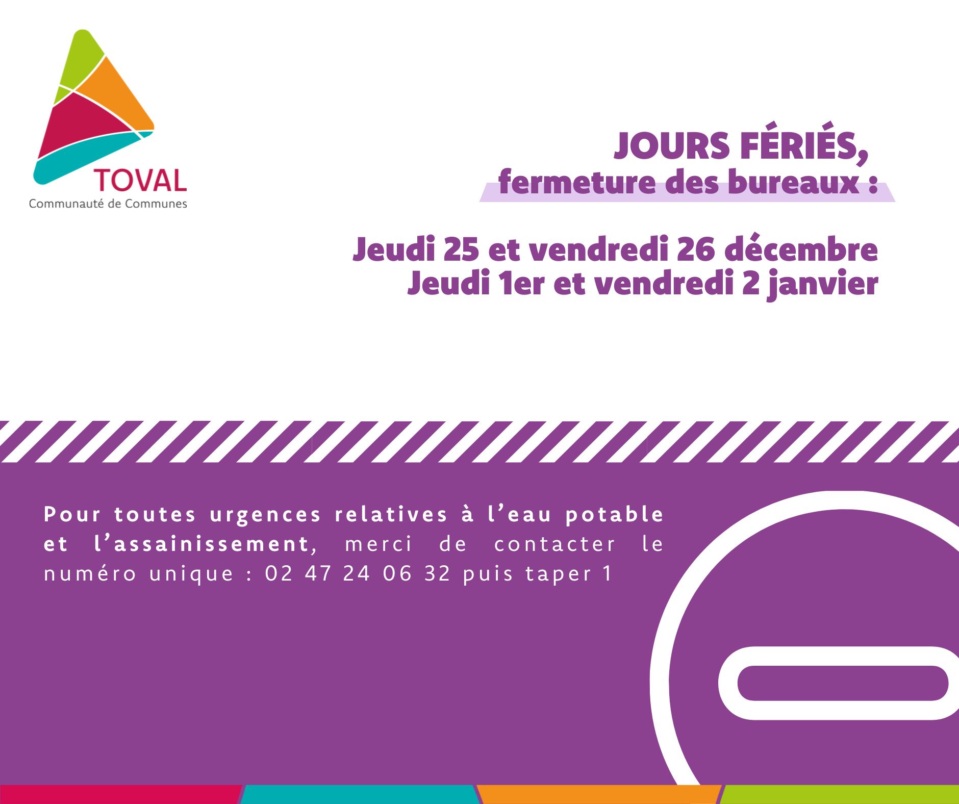 Fermeture des bureaux CCTOVAL – 25 et 26 décembre & 1er et 2 janvier