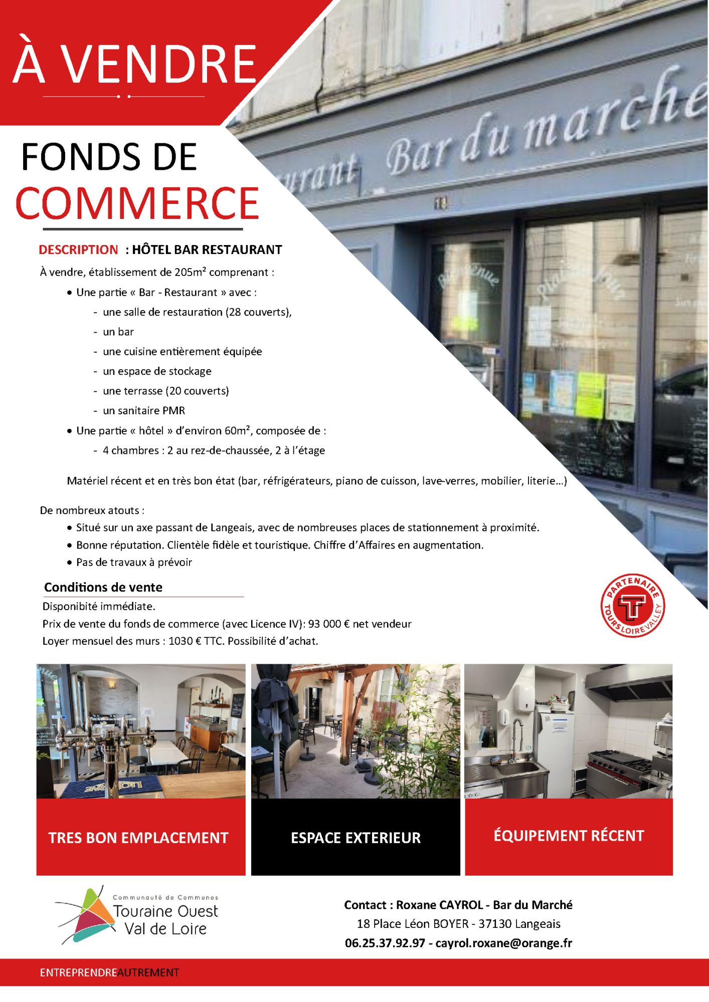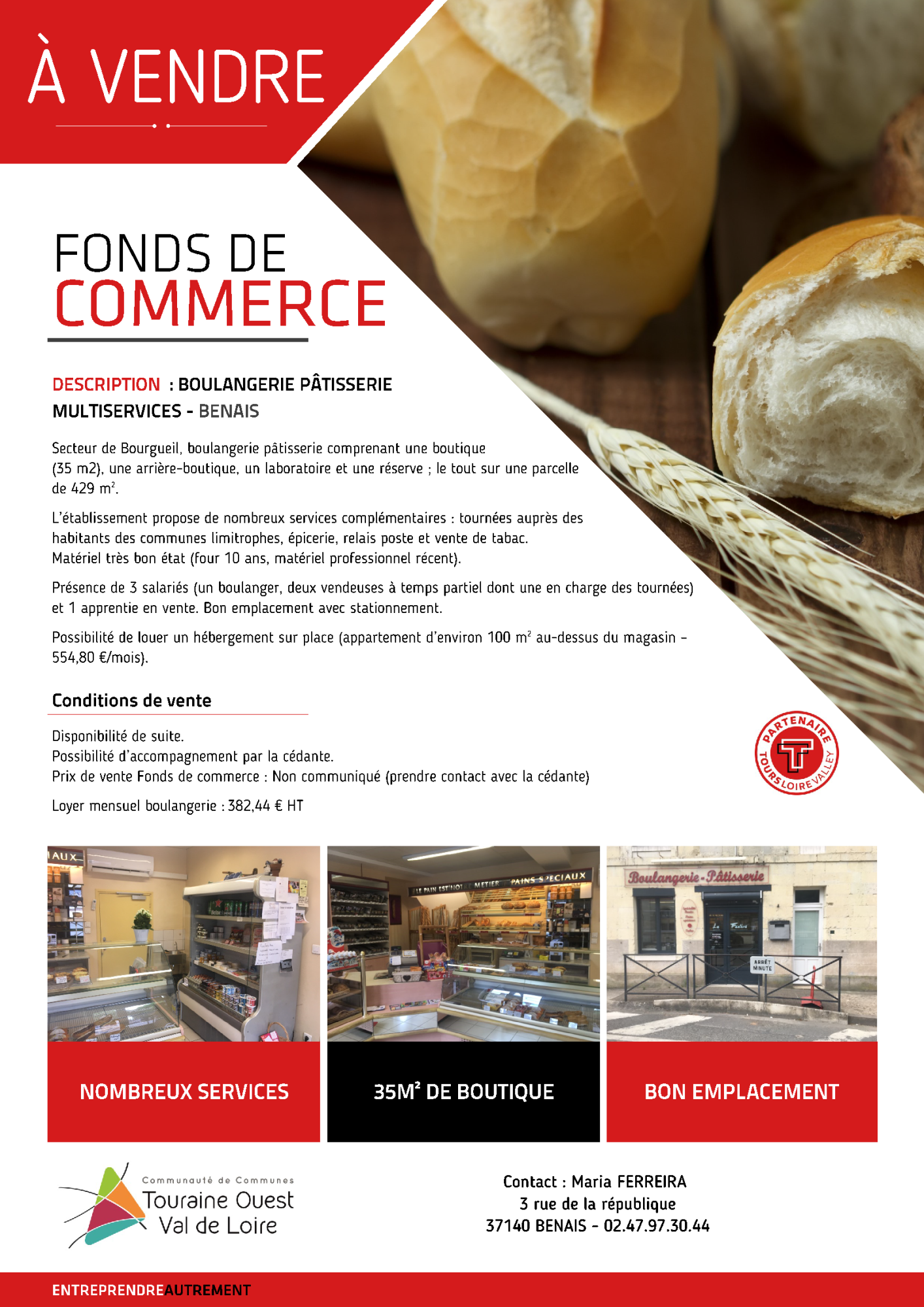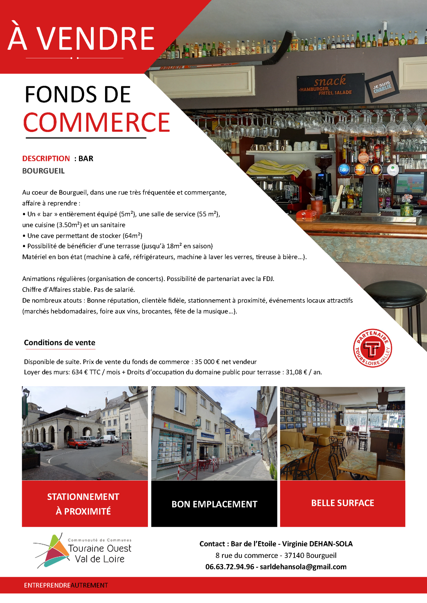 À l’initiative de la Communauté de communes Touraine Ouest Val de Loire, en partenariat avec la CCI Touraine, un diagnostic commerce (état des lieux du commerce en analysant le point de vente, l’agencement de vos produits, vos outils de communication, – identifier les forces et faiblesses) est proposé et entièrement gratuit pour le commerçant. Le cout est pris en charge par la CCTOVAL.