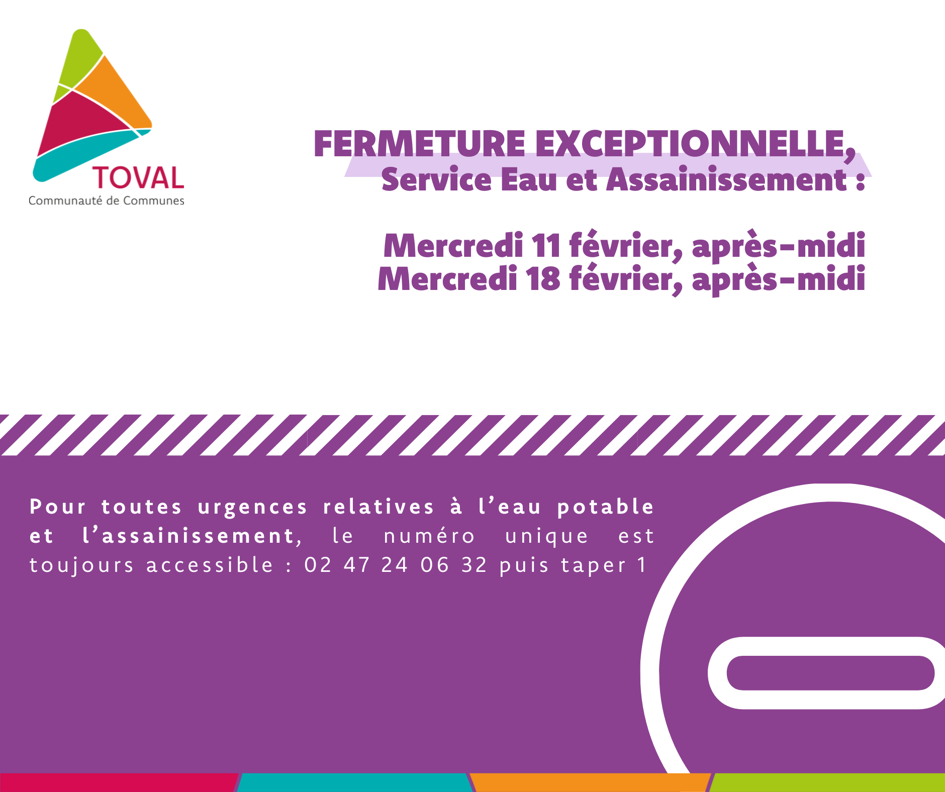 Accueil > Alerte > Fermeture exceptionnelle – service eau et assainissement